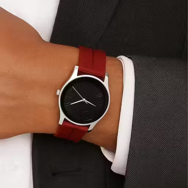 MEN Boys Analogue Black Dial Black Leather Straps FOR WATCH