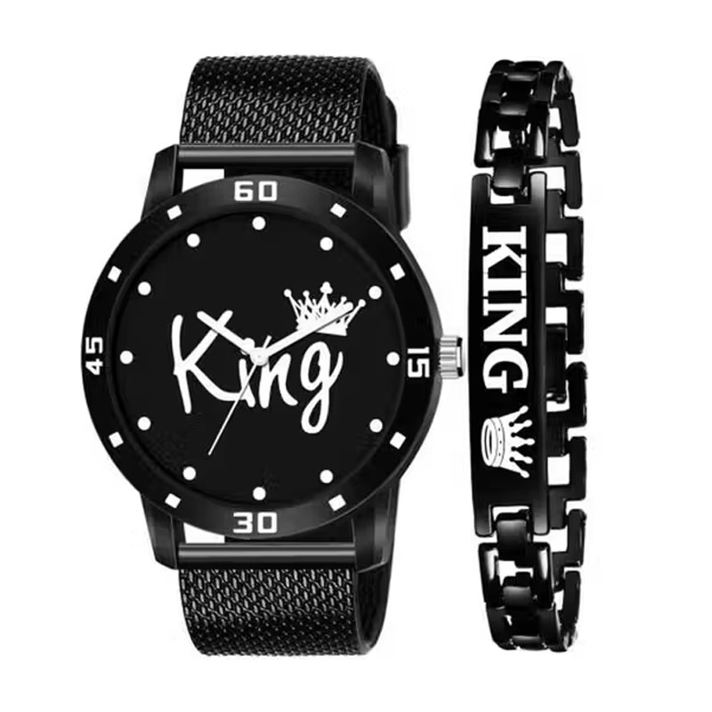 Premium Black Metal Strap Analog Wrist Watch for Men