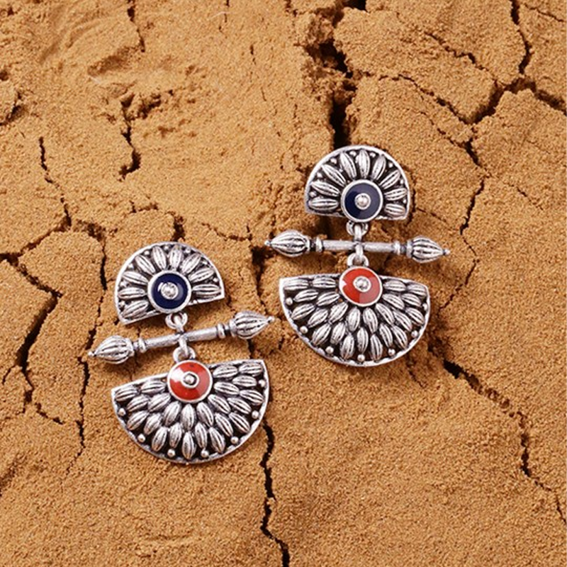 Silver-Plated Oxidized Geometric Jhumkas Earrings